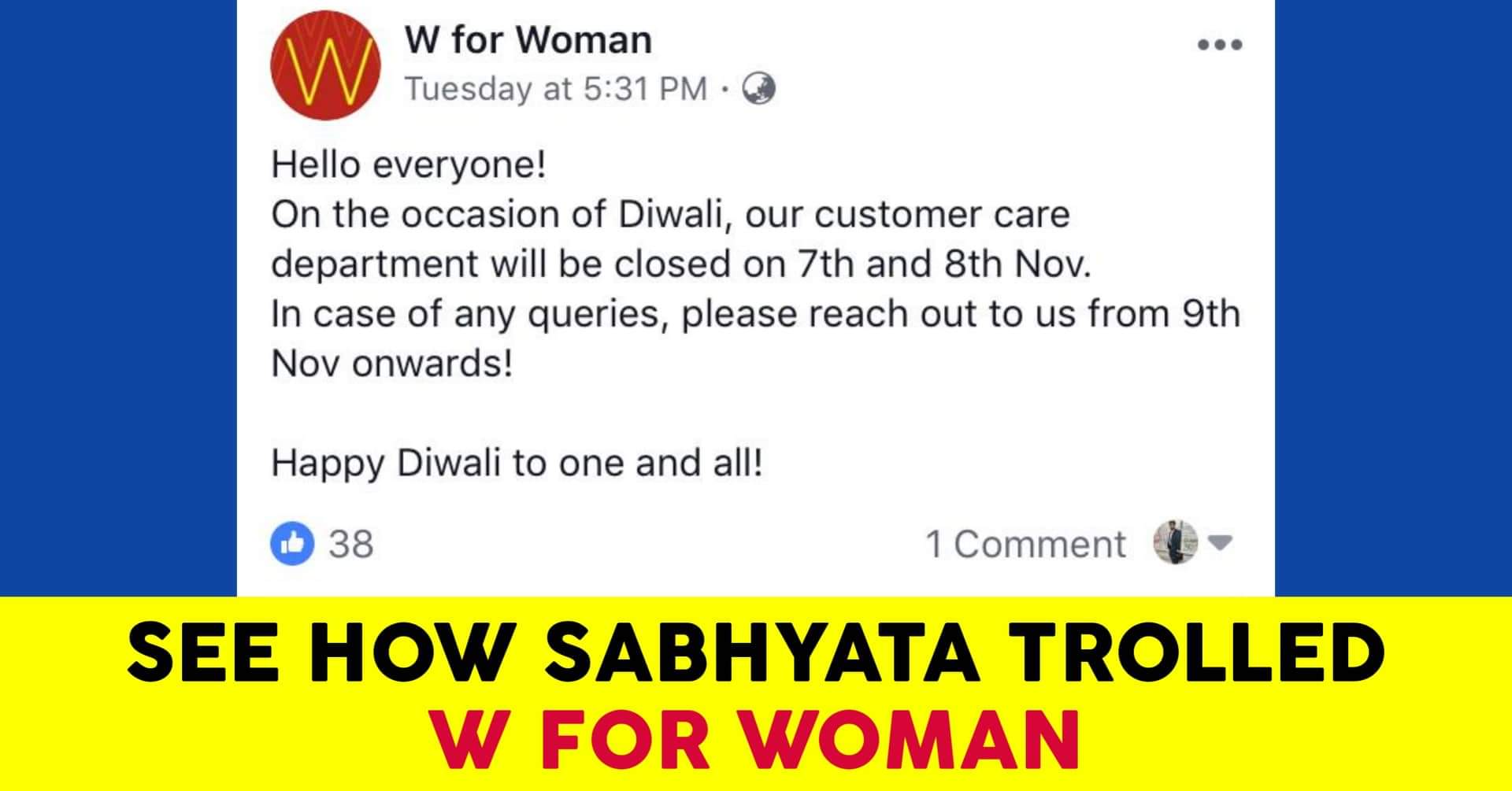 Sabhyata Trolls W For Woman Over Customer Care Services Marketing Mind